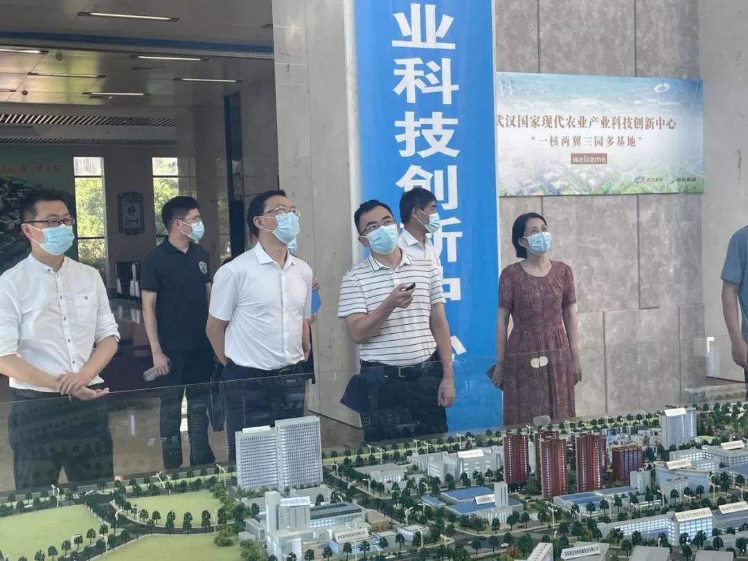 在武漢農創(chuàng)中心展廳,王海濤廳長詳細了解武漢農創(chuàng)中心總體規(guī)劃、戰(zhàn)略目標、主導產業(yè)、科技創(chuàng)新、公共平臺等相關情況。王海濤廳長指出,武漢農創(chuàng)中心建設已初具雛形,特別是在主導產業(yè)培育、科研平臺打造等方面獨樹一幟,集聚培育一批行業(yè)龍頭企業(yè)和重點研發(fā)創(chuàng)新機構,形成了產業(yè)和科創(chuàng)資源的集聚效應和規(guī)模效應。王海濤廳長表示,將重點支持武漢農創(chuàng)中心建設,加速培育壯大一批省內領軍、全國知名的科技型、產業(yè)化龍頭企業(yè),助力十大重點農業(yè)產業(yè)鏈建設和推動湖北現代農業(yè)產業(yè)高質量發(fā)展。