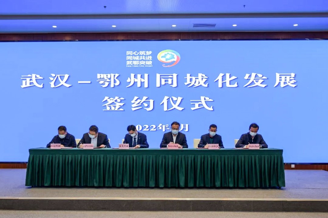 座談會上,程用文、孫兵分別介紹有關(guān)工作情況。雙方簽訂了《武漢鄂州共建武漢城市圈同城化核心區(qū)合作協(xié)議》等文件。其中,武漢高科集團(tuán)與葛店開發(fā)區(qū)管委會簽訂了《光谷葛店毗連區(qū)城市客廳項(xiàng)目合作協(xié)議書》。