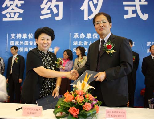 10月16日,2009華僑華人創(chuàng)業(yè)發(fā)展洽談會在武漢國際會展中心舉辦?;顒悠陂g,舉行了華僑華人創(chuàng)業(yè)發(fā)展洽談會項目簽約儀式,光谷生物城與5個項目簽訂了合作協(xié)議,其中由歸國華僑孫小蓉博士代表武漢蘭丁醫(yī)學高科技公司與武漢高科醫(yī)療器械園公司簽署了入園協(xié)議。蘭丁醫(yī)學公司成為了高科醫(yī)療器械園第一家簽約入園企業(yè),也是高科醫(yī)療器械園擴大海外交流,成功引智、引技、引才的典范。