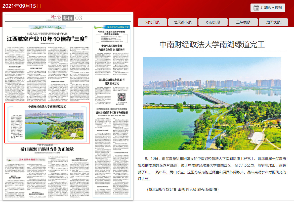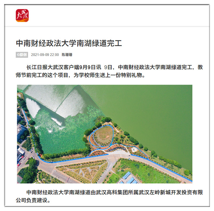 湖北日報:中南財經(jīng)政法大學(xué)南湖綠道完工