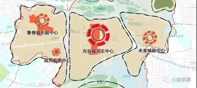 早在2019年2月,東湖高新區(qū)就提出要高起點(diǎn)建立“東部副中心”,加快推進(jìn)“一主兩副四組團(tuán)”的城區(qū)空間布局?!耙恢鳌笔枪夤戎行某?,“兩副”則是魯巷副中心和未來(lái)城副中心。很顯然魯巷發(fā)展已經(jīng)飽和,光谷中心城門(mén)檻大幅提升,下一個(gè)將重點(diǎn)打造未來(lái)城副中心。